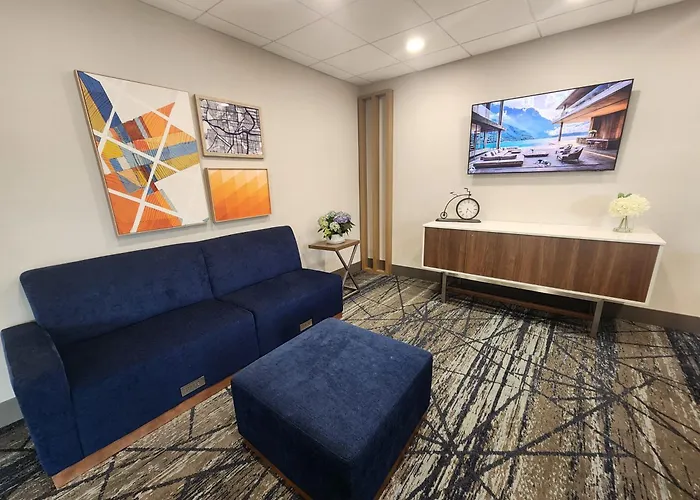 The accommodation lies in Fredericksburg, adjacent to lakes. You'll be only 1.5 km from Lake Mooney. The nearby entertainment options include Cannon Ridge Golf Club, which is 10 minutes away by car. Also, a train station is set near Affordable Suites Of America Fredericksburg.